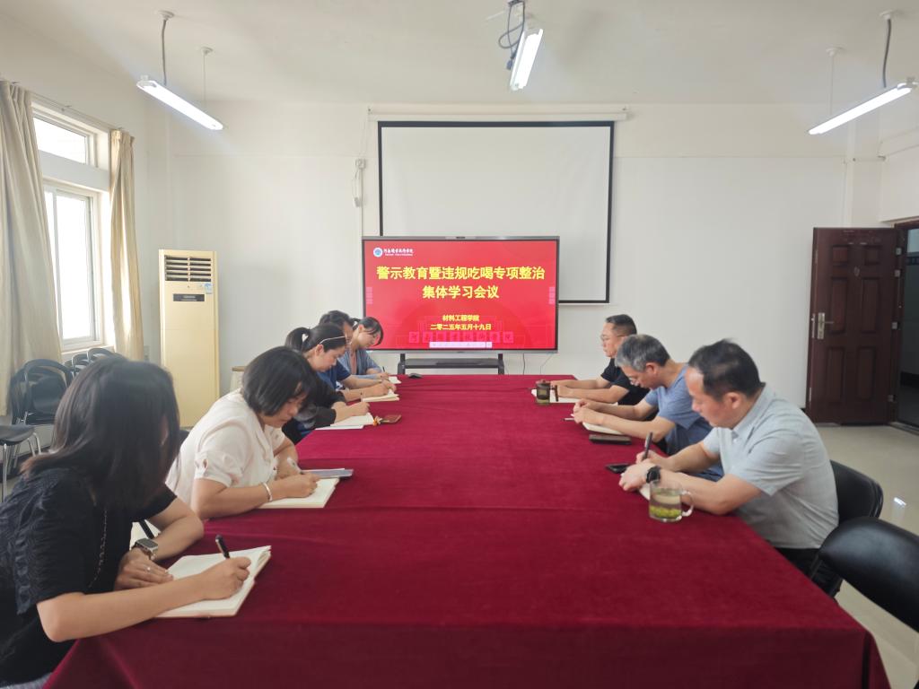 5月19日,yl23455永利集团组织召开警示教育暨违规吃喝专项整治集体学习会议,学院领导班子成员及全体党员参会。