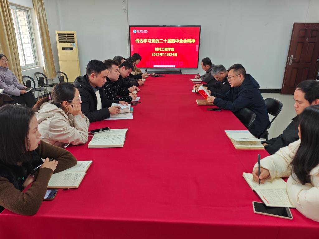 11月24日下午,yl23455永利集团在笃行楼523室召开专题学习会议,深入学习党的二十届四中全会精神,并结合学院实际提出贯彻落实全会精神的具体要求。全体教职工参加会议。