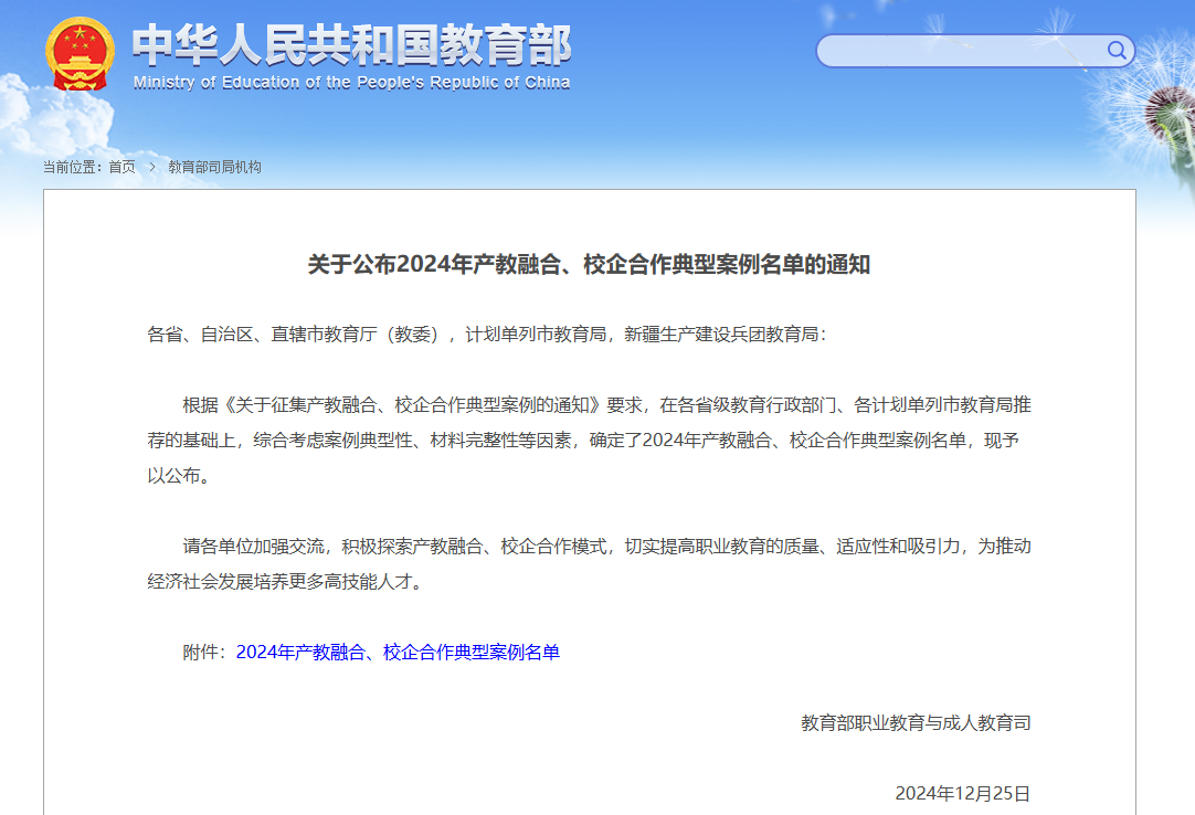 河南职院一案例入选教育部2024年产教融合、校企合作典型案例