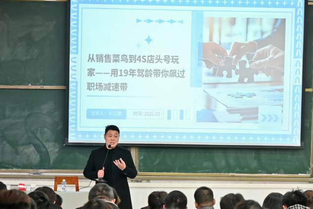 互动环节,刘亚鹏针对同学们提出的“新能源汽车行业趋势”“职业转型关键能力”等问题,结合自身管理比亚迪腾势中心的实战经验逐一解答,现场气氛热烈。