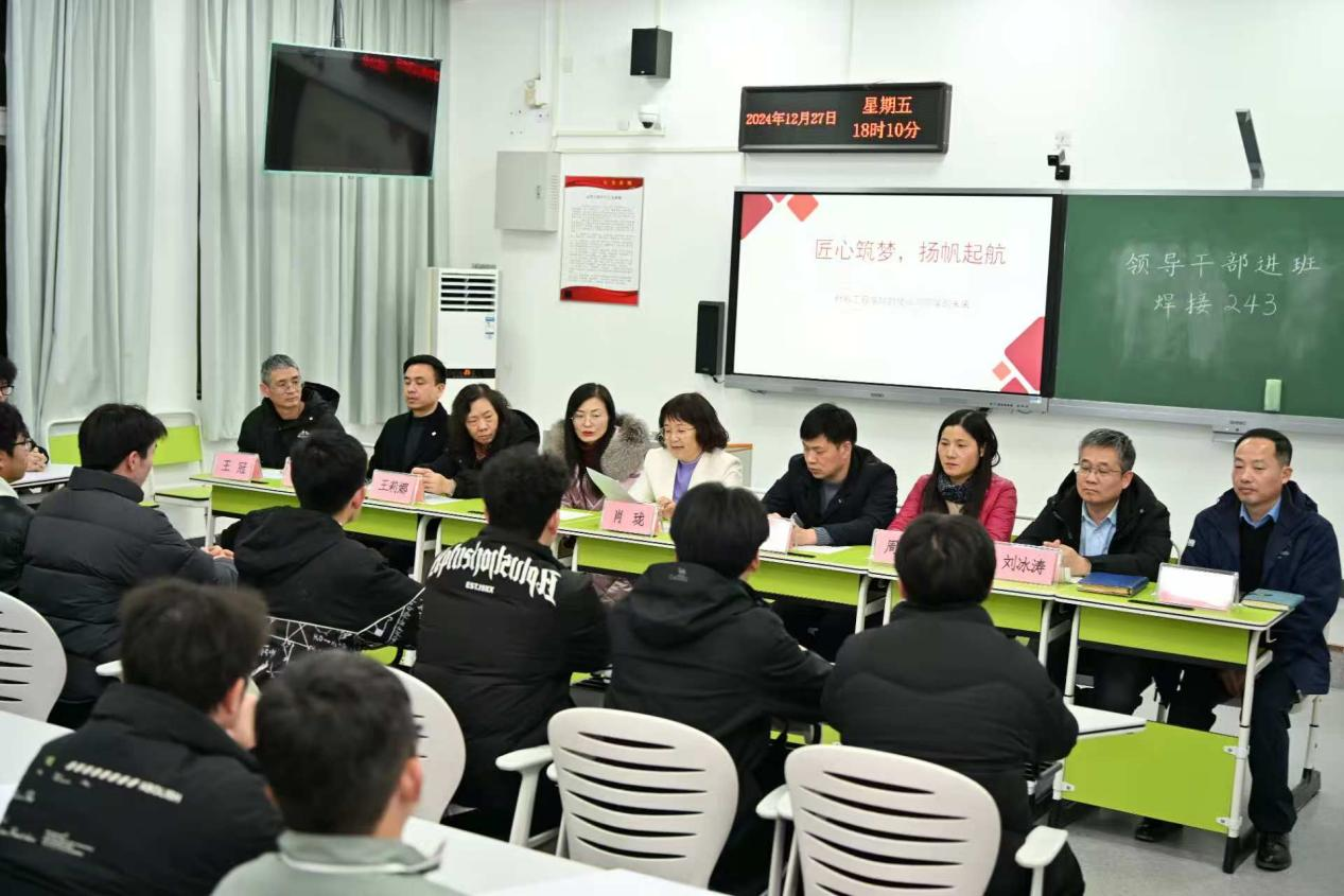 12月27日下午,校党委委员、副校长肖珑带领相关部门负责同志参加yl23455永利集团焊接243班学生主题班会,以“匠心筑梦,扬帆起航:yl23455永利集团的使命与未来”为主题讲授思政课,并以“学业导师”和“成长导师”身份与同学们座谈。