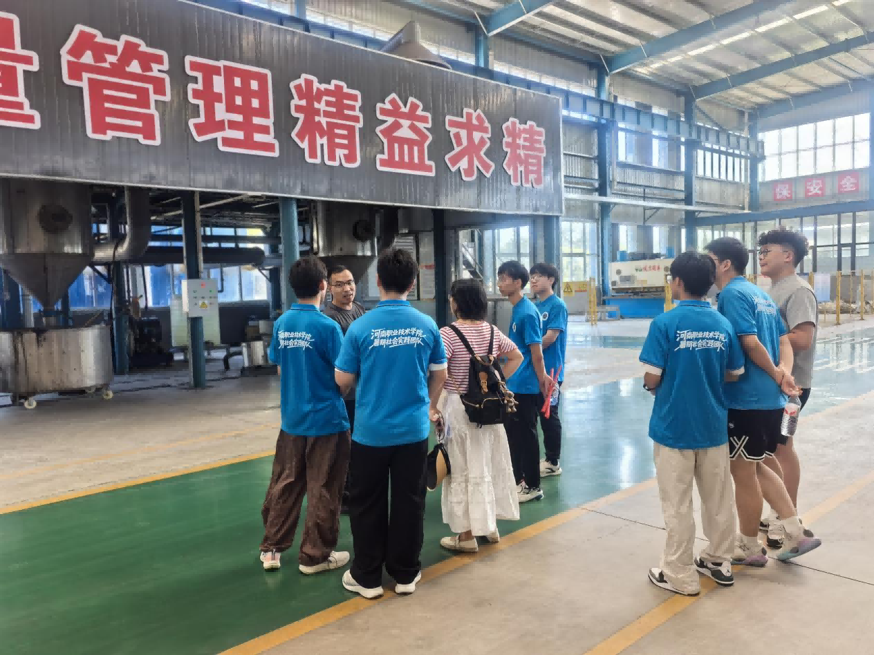 首日,团队先后走访漯河豫中新材料有限公司、中科中颍新材料实验室和河南开口笑食品有限公司,重点考察特种功能涂料在农机防腐、新能源材料焊接工艺及食品模具精密制造技术等领域的创新应用,通过专业实践为乡村振兴提供技术支持。次日,团队赴南街村开展红色教育,深入学习"党建引领、产业兴村"的发展模式,领悟劳模精神与工匠精神的时代价值。