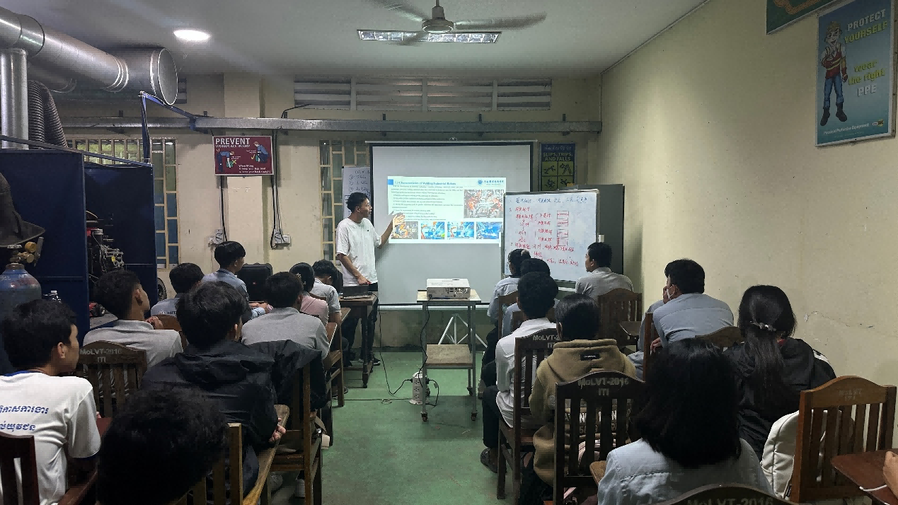 永利集团王亚强老师负责智能焊接技术培训模块。50天的培训中,他克服语言沟通不畅、生活不便等种种困难,花费大量时间精心备课,理论课上融入简单易懂又贴近实际的案例进行通俗易懂地讲解,实操课上手把手教导学生掌握每一个焊接要领。王亚强老师的倾心付出,使柬埔寨学生获得宝贵的“中文+”复合型技术技能,同时,也给柬方职业院校输送了智能焊接职业培训标准和经验,进一步深化了中柬职业教育国际合作与友谊。
