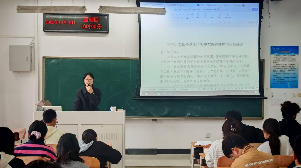 活动中,各班级围绕大学生日常行为规范"十要十不要"展开专题学习。辅导员结合校园实际案例,引导学生树立规则意识和责任意识,将行为规范内化为自觉行动。